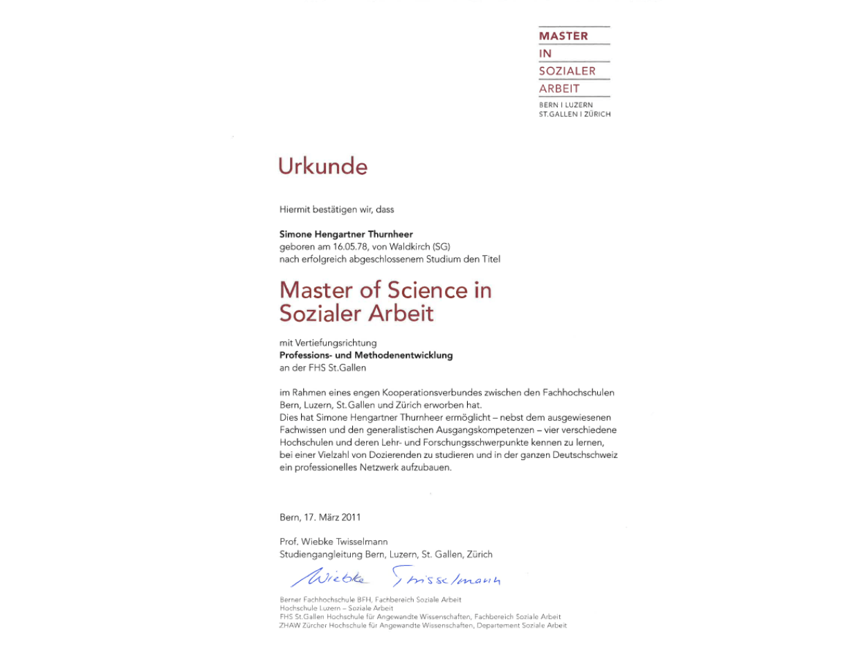 Ich bin Simone Hengartner Thurnheer – MSc FHO in Sozialer Arbeit, zertifizierte ZRM®-Trainerin ISMZ, Lehrbeauftragte, Gründerin der Firma KONSENSE und Entwicklerin von WirkWise.